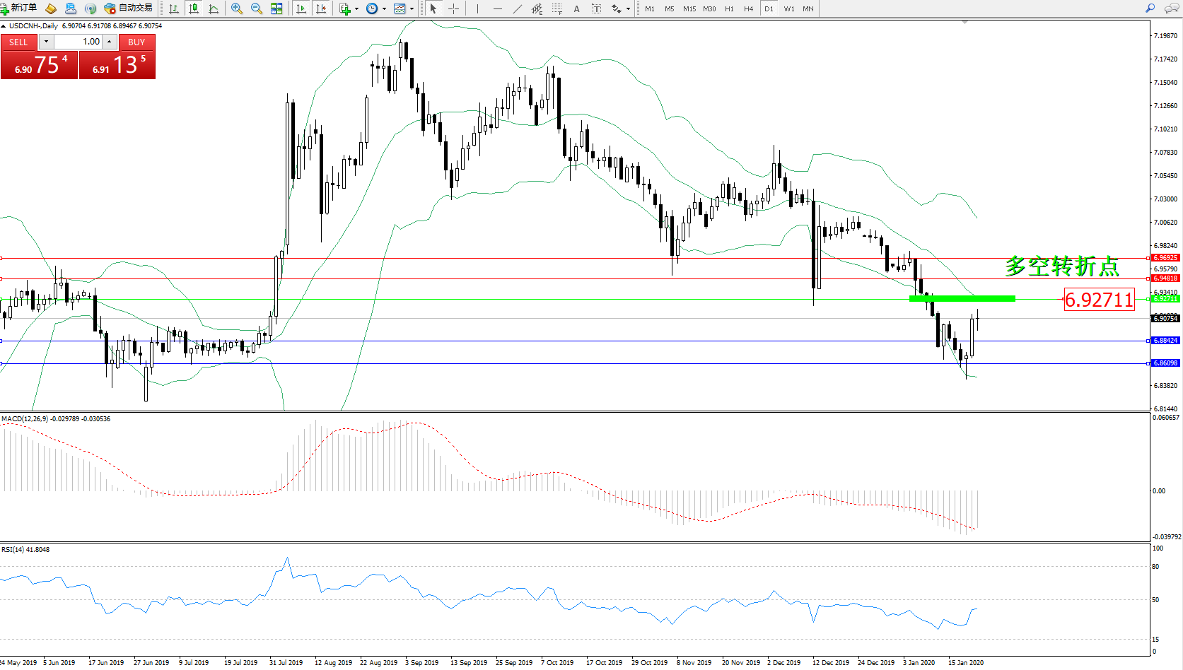 美元人民币USDCNH——日K线图显示: