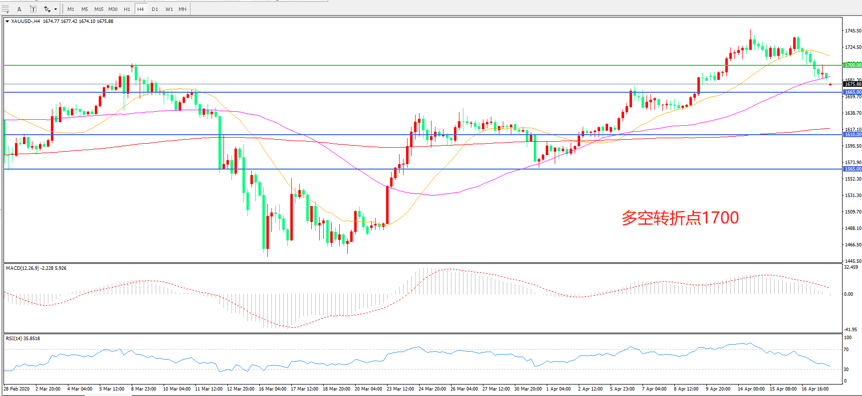 多空转折点:1700.00