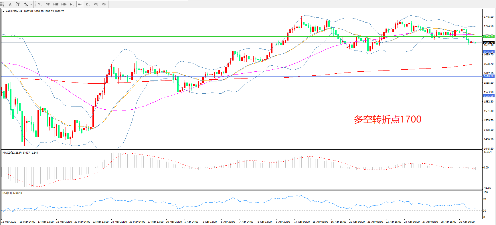 交易策略: 在1700.00 之下看跌,目标1665.00 1610.00