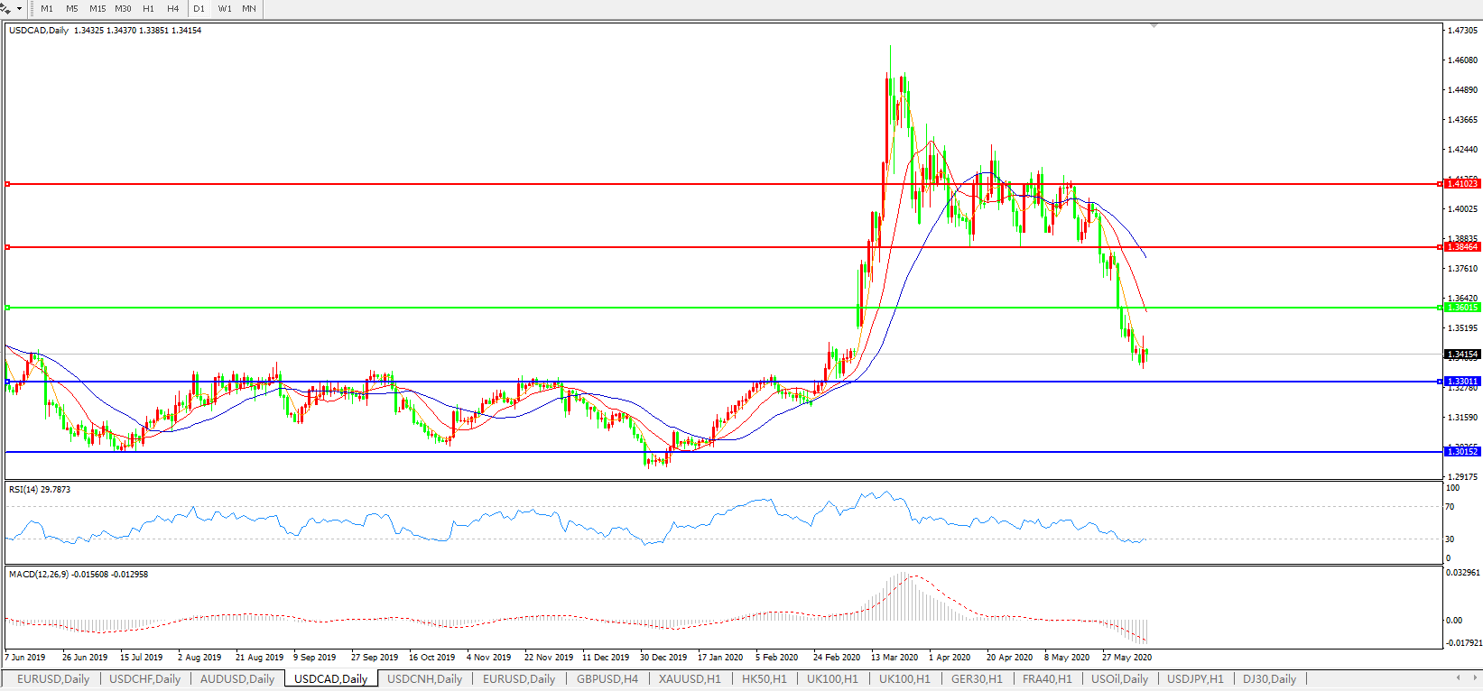 美元兑加元USDCAD    日线图: