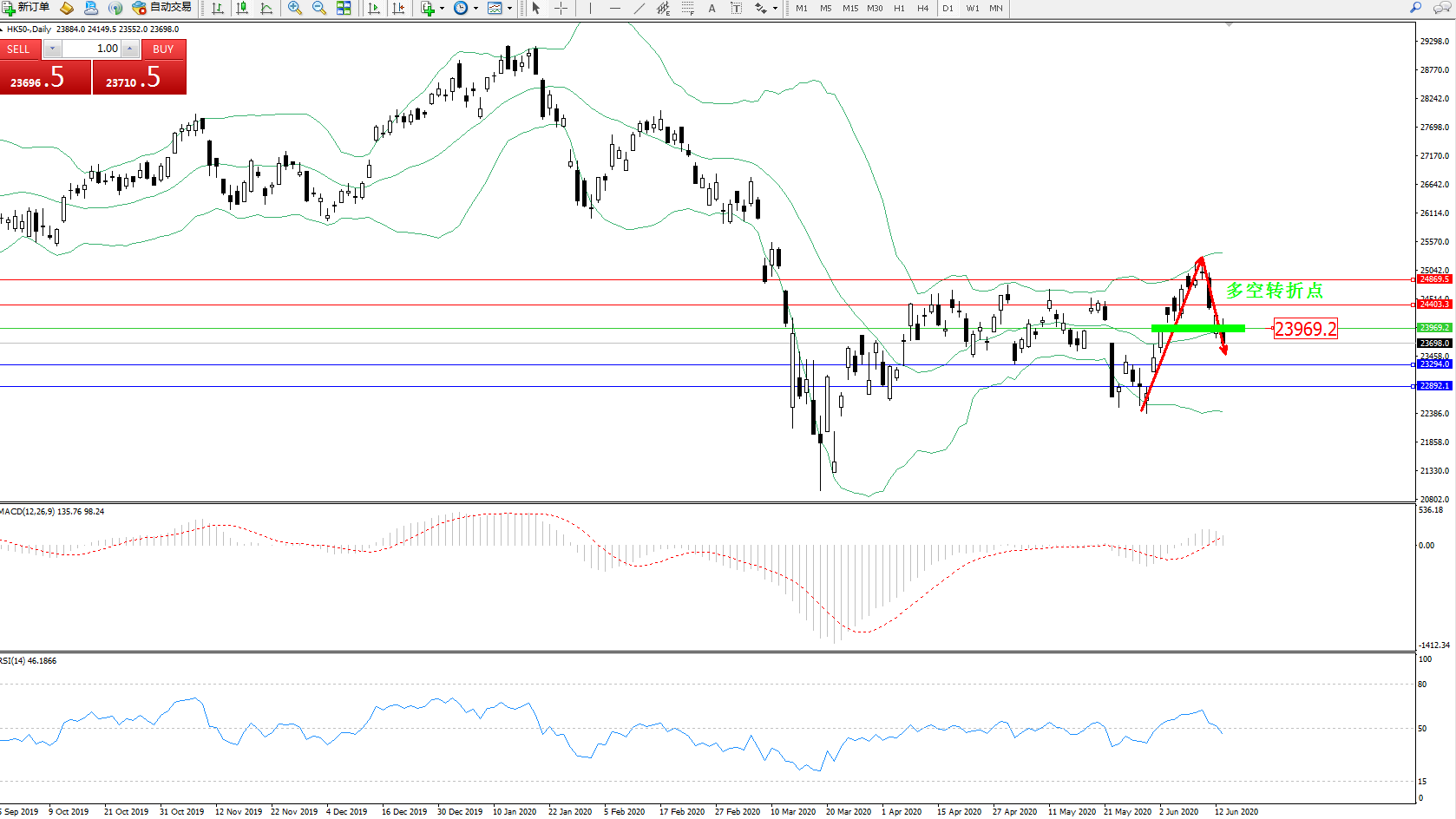 恒指HK50 ——日K线图显示: