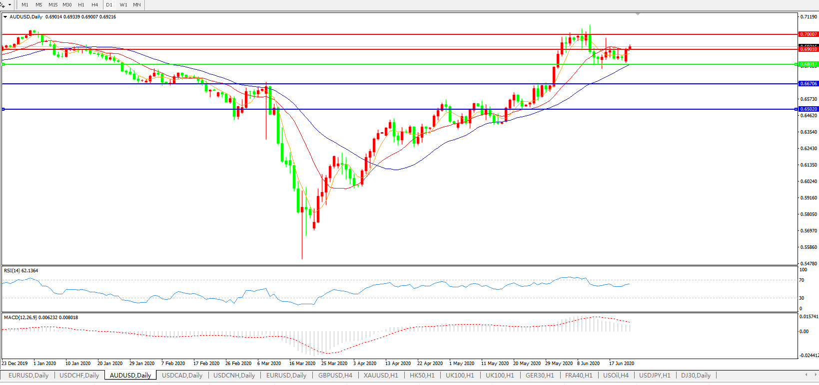 澳元兑美元AUDUSD 日线图: