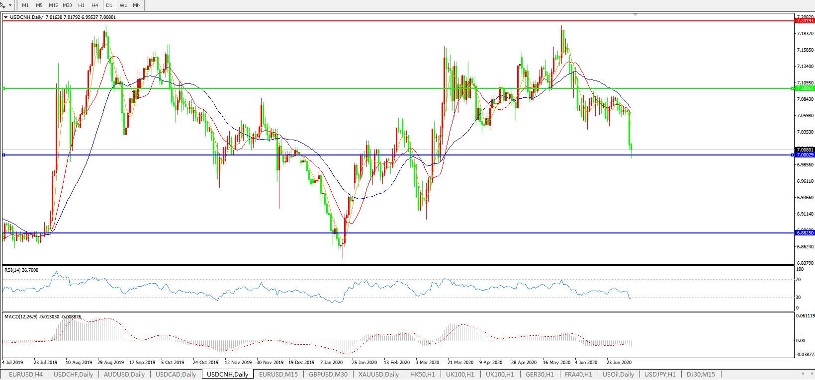 美元兑人民币USDCNH    日线图: