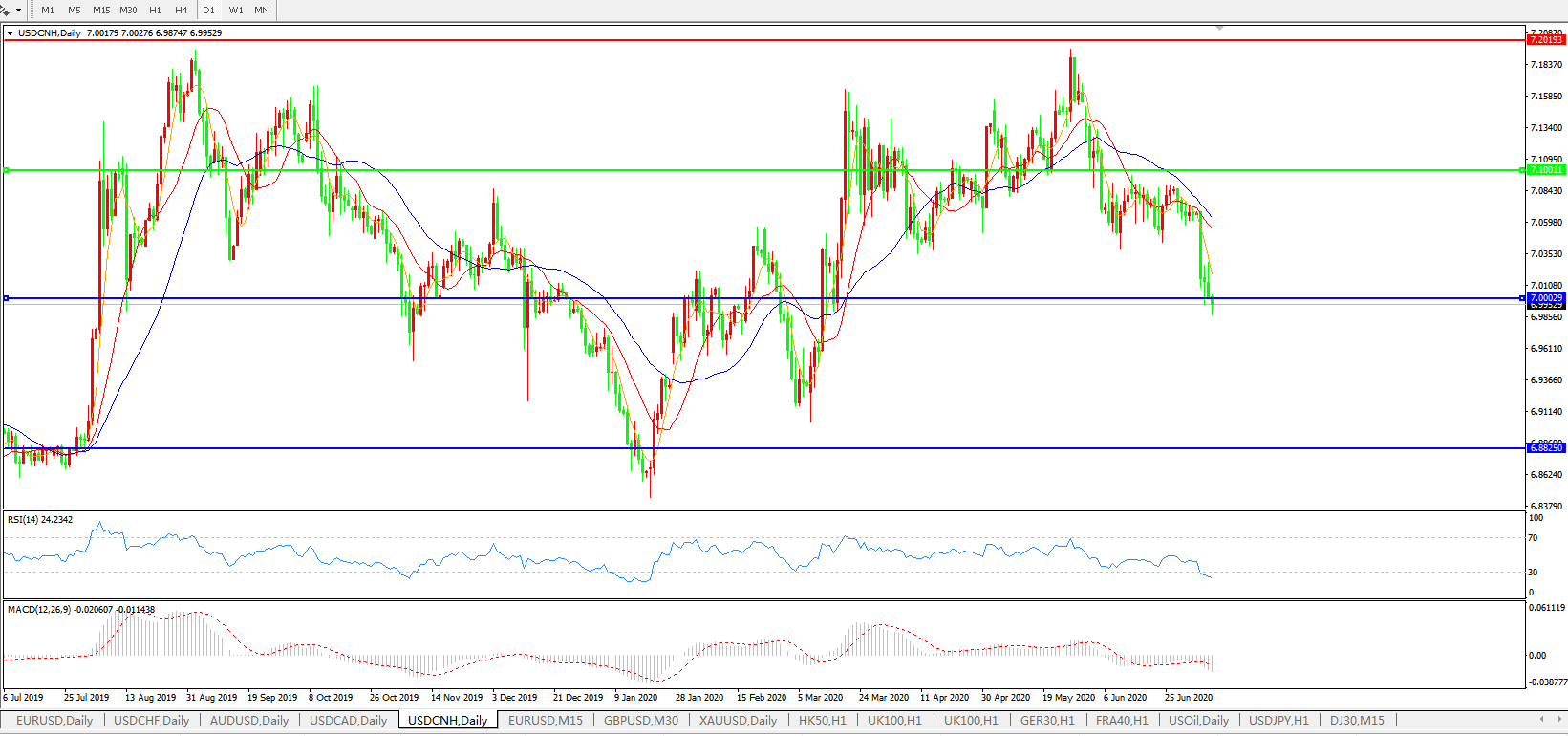美元兑人民币USDCNH    日线图: