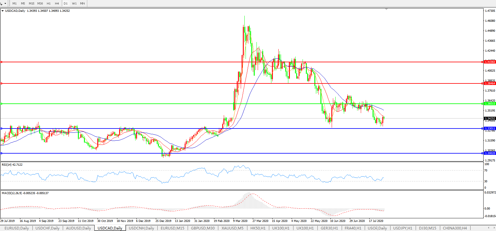 美元兑加元USDCAD    日线图: