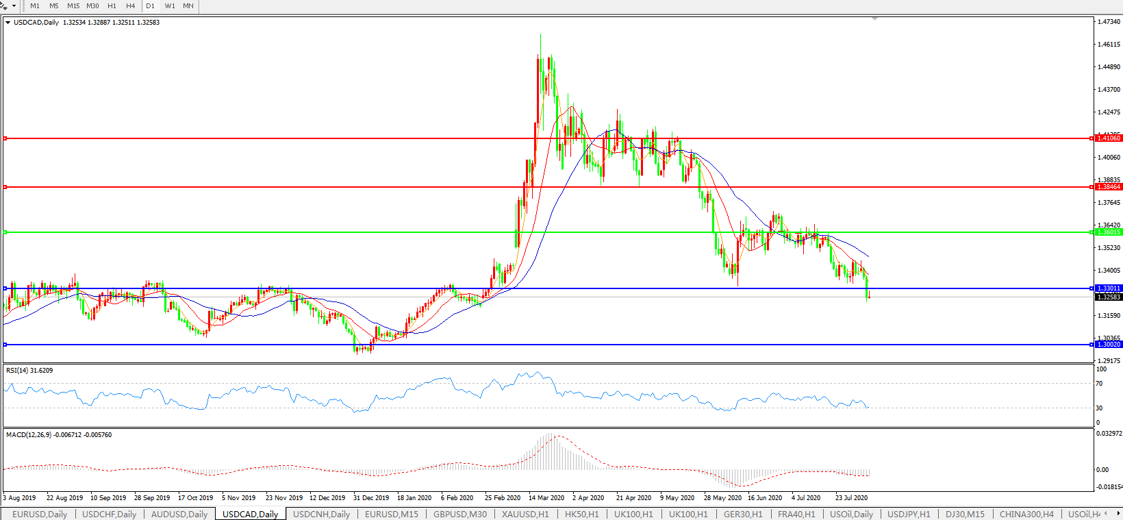 美元兑加元USDCAD    日线图: