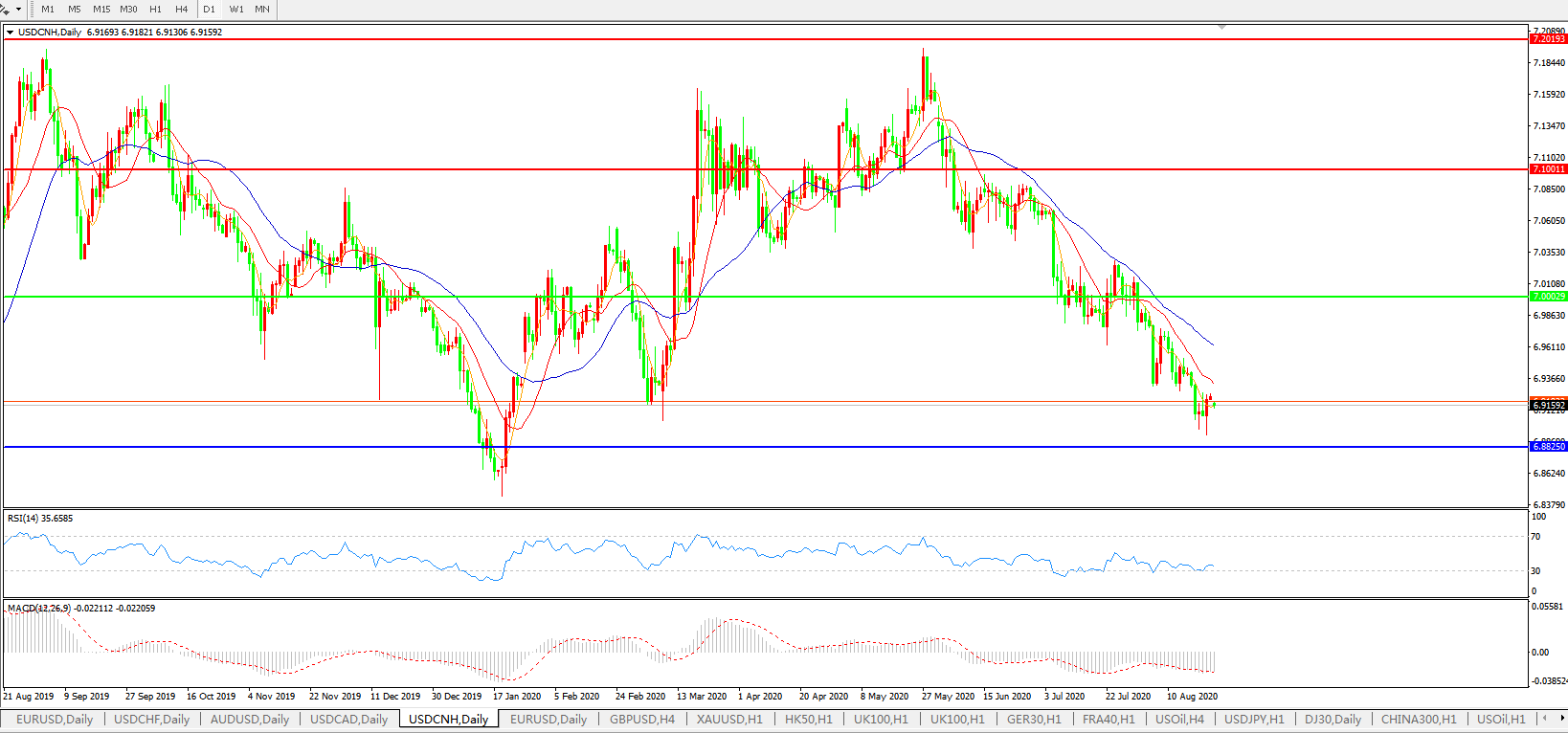 美元兑人民币USDCNH    日线图: