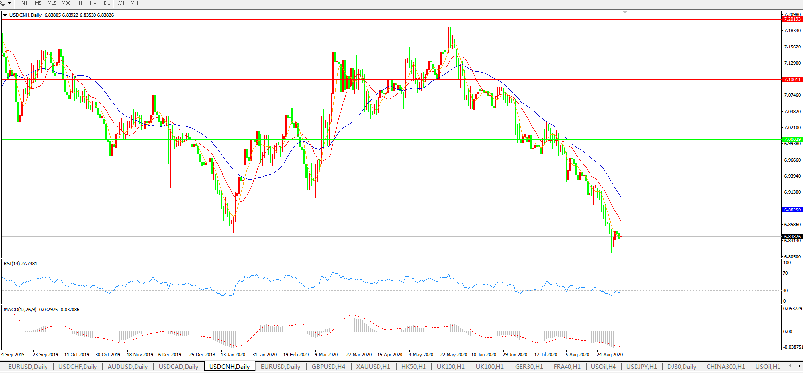 美元兑人民币USDCNH    日线图: