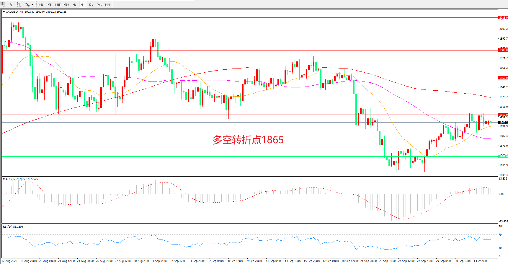多空转折点:1910.00