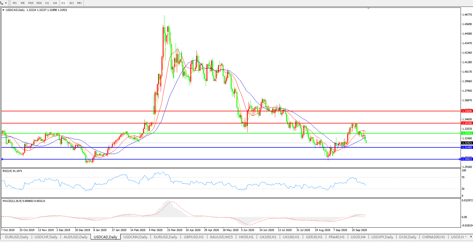 美元兑加元USDCAD    日线图: