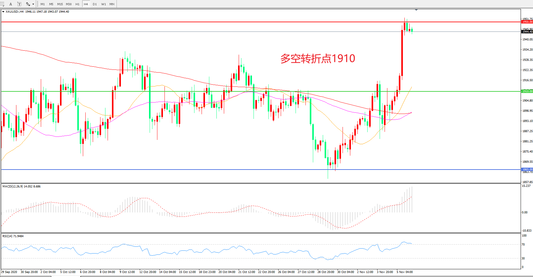 交易策略:在1910.00之上看涨,目标1950.00   1980.00