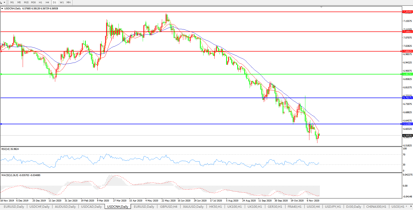 人民币兑美元即期周四收盘大跌近430点至近一周低位,中间价则再升109点续创近29个月新高;交易员表示,美指已跌至底部位置很可能会迎来一波反弹,而在基本面和利差等因素驱动下人民币当前水平已接近充分定价;今日客盘结购汇均旺盛,但相较下购汇需求更多;当前美指已经跌倒较低水平,应该会迎来一波反弹;新兴市场货币中,泰铢及韩元因近期升值过快引发其监管层关注;泰国央行总裁塞塔普特周四表示,央行干预了汇市以阻止泰铢升值,而两名本地外汇交易员表示,韩国央行周四疑似买入美元来抑制韩元上涨;辉瑞和BioNTech周三表示,他们的新冠疫苗可能将于下月获得美国和欧洲的紧急授权,此前公布的最终试验结果显示,该疫苗有效性高达95%,且没有严重副作用; BMO Capital Markets美国利率策略部主管Ian Lyngen表示,市场目前正在权衡两种截然不同的说法;一是我们有疫苗了,我们会恢复正常,买股票;另一种是新增病例数飙升,我们需要从国会获得更多资金,因此买公债;全球汇市方面,美元连跌五个交易日后在周四整理跌势,投资者虽对新冠疫苗持长期乐观态度,但也在担忧感染人数增加以及全球经济复苏脆弱