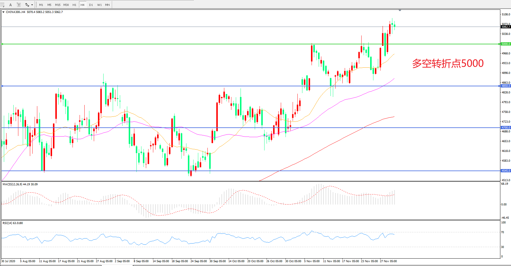 交易策略:在5000.00之上看涨,目标5150.00 5300.00