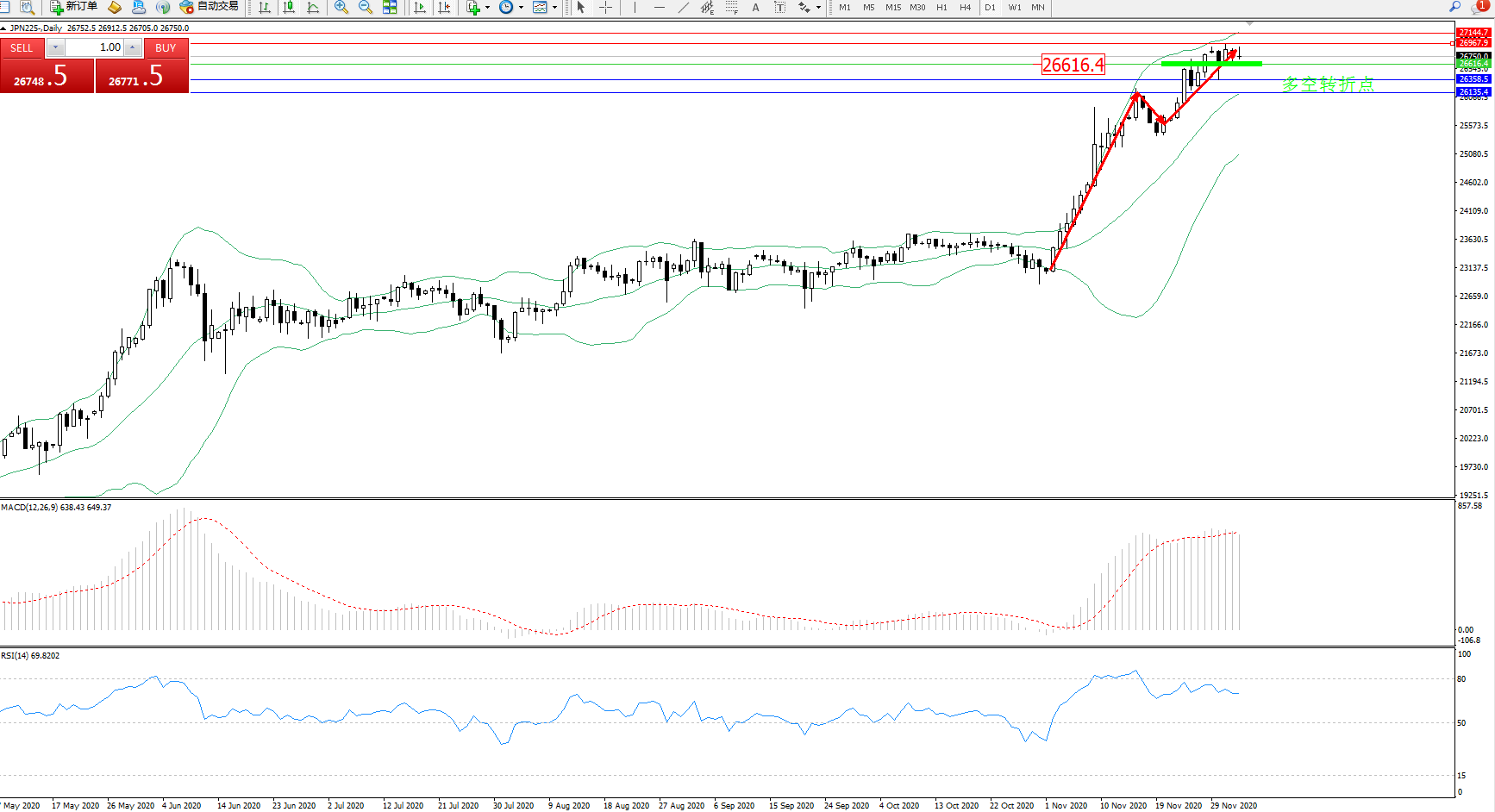 交易策略:26616上方看涨,目标26967、27144