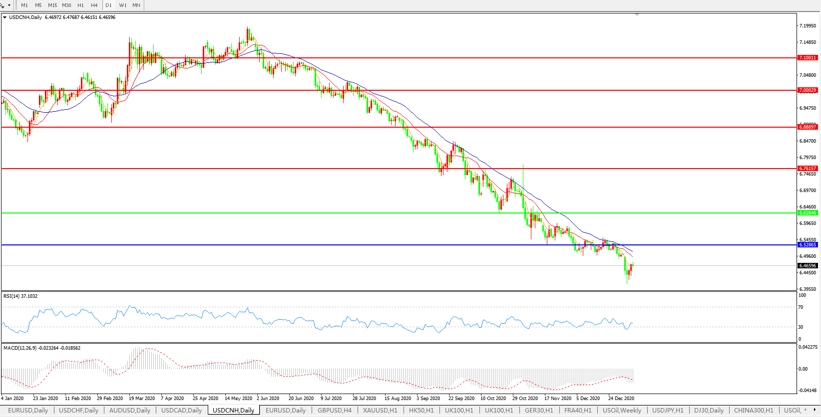 交易策略: 在6.6265之下,看跌,目标价位为6.5286然后为6.3500