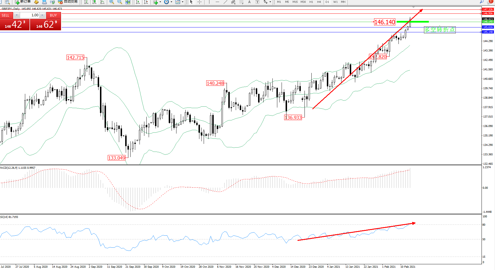 多空转折点:146.140