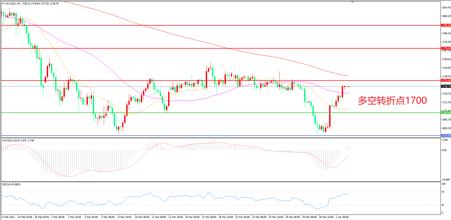 多空转折点:1700.00