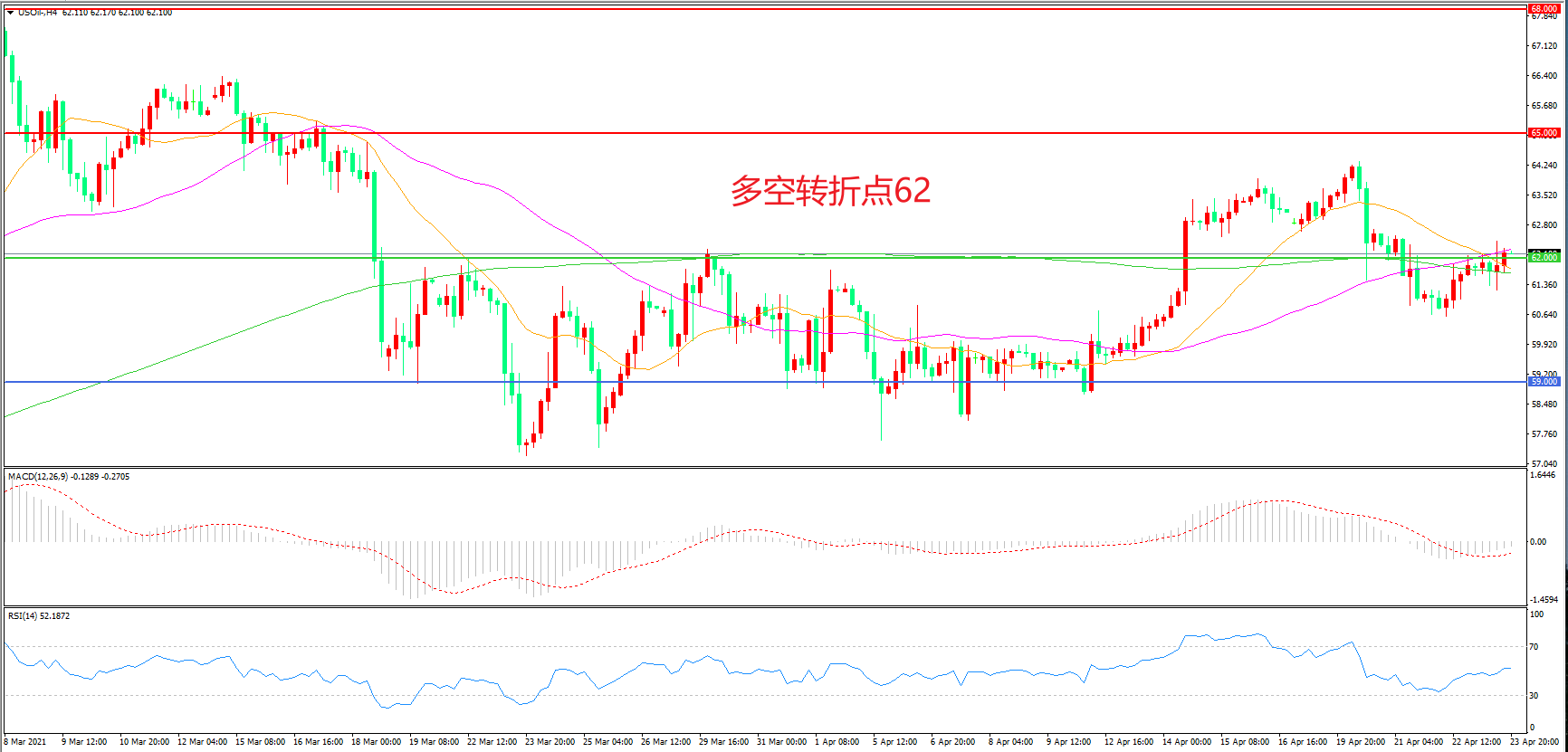 交易策略:在62.00之下看跌,目标59.00    55.00