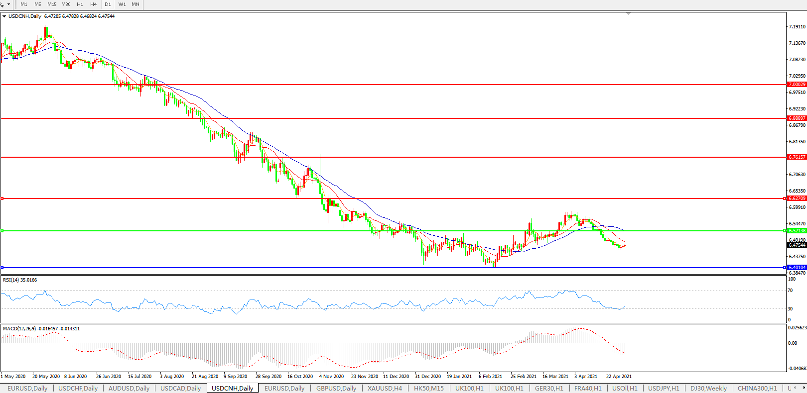 美元兑人民币USDCNH 日线图: