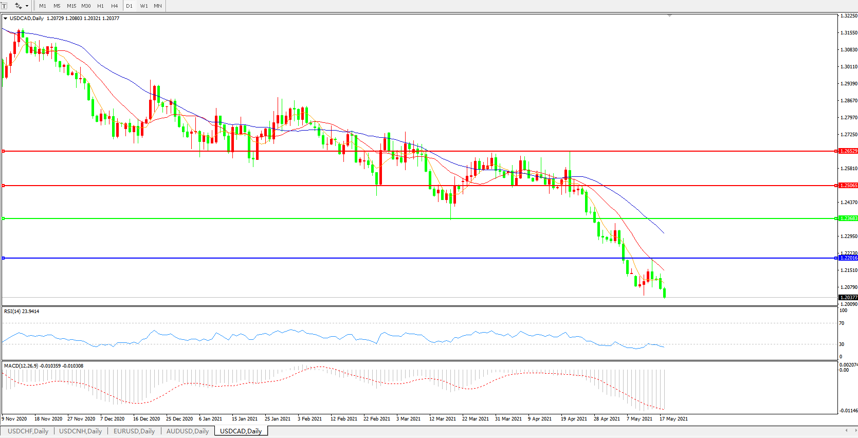 美元兑加元USDCAD 日线图: