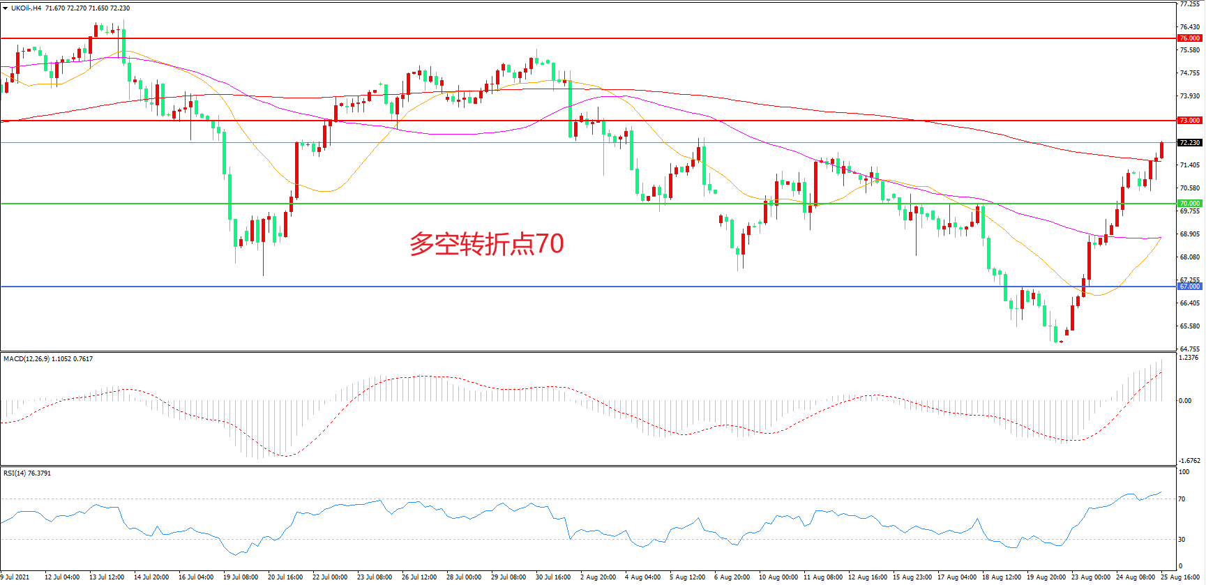 交易策略:在70.00之上看涨,目标73.00 76.00