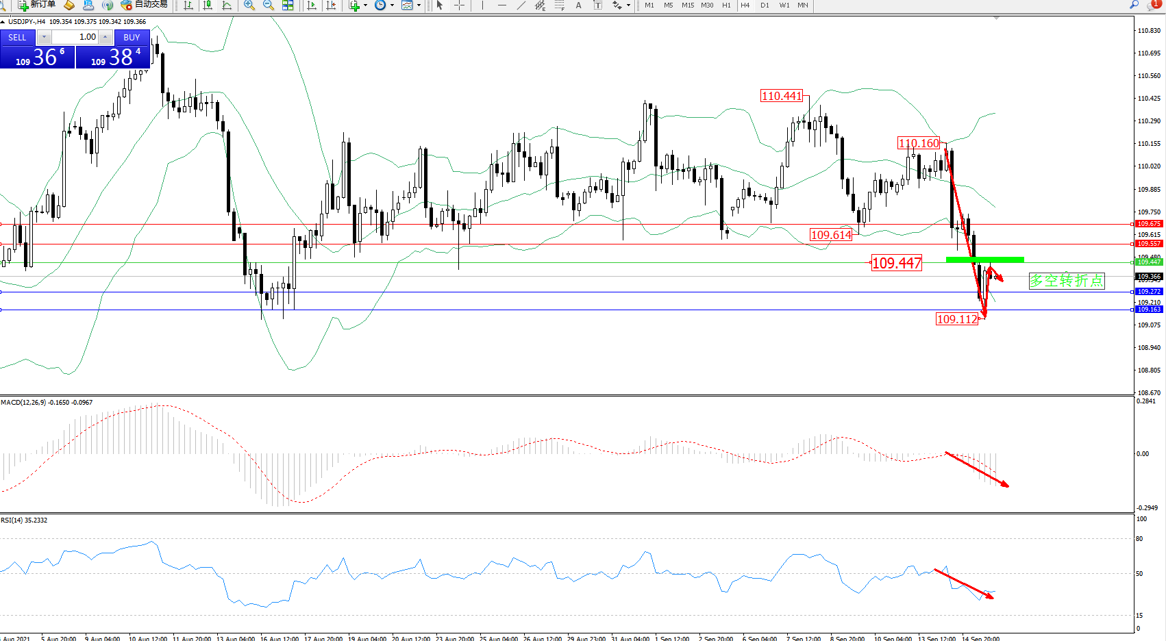 交易策略:109.447下方看跌,目标109.272、109.163