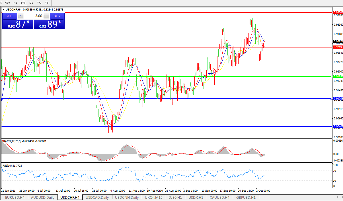 美元兑瑞郎USDCHF 4小时图: