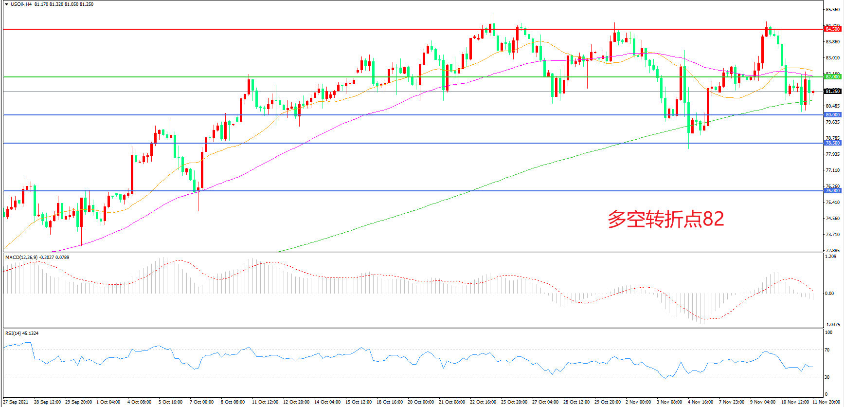 多空转折点:82.00