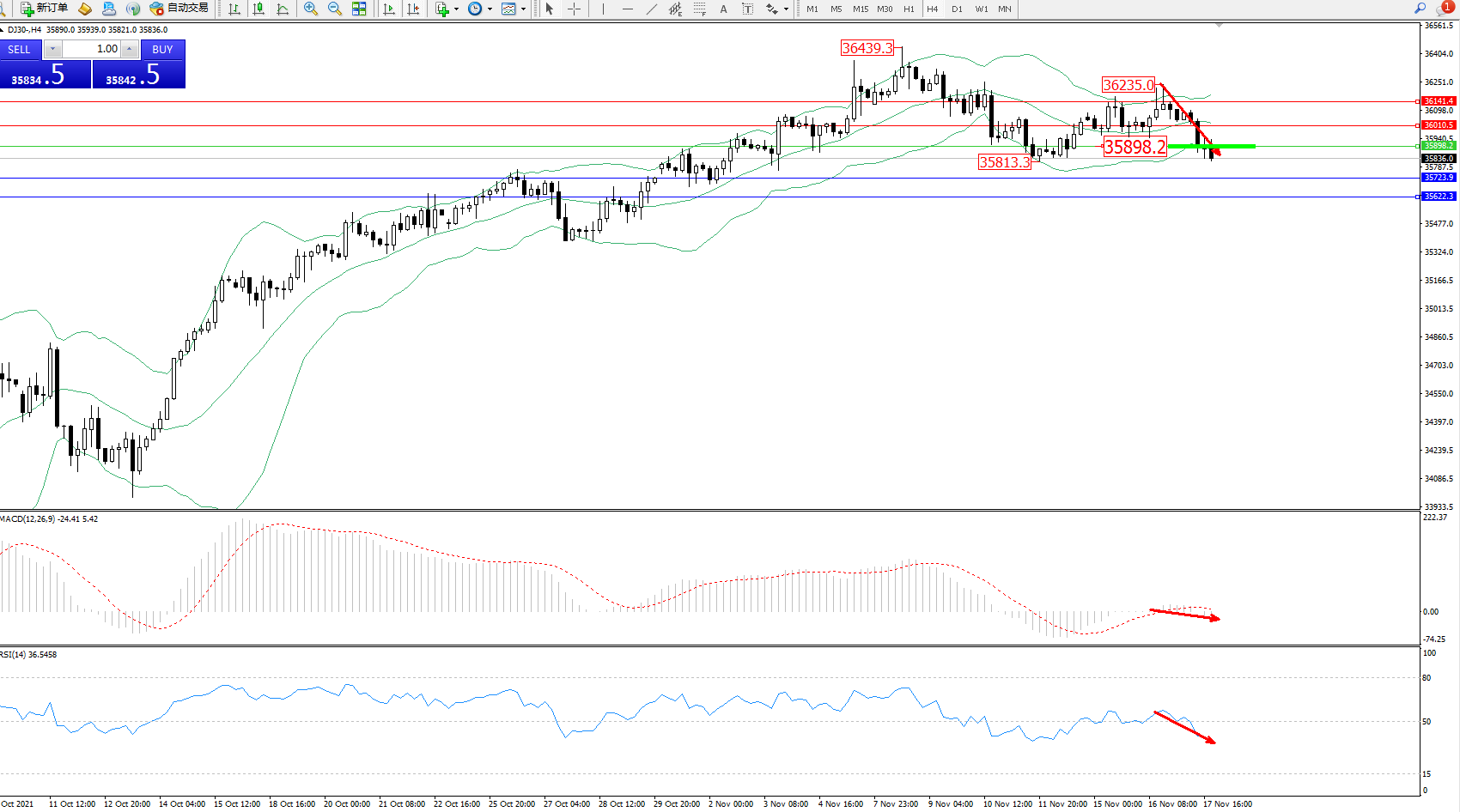 交易策略:35898下方看跌,目标35723、35622