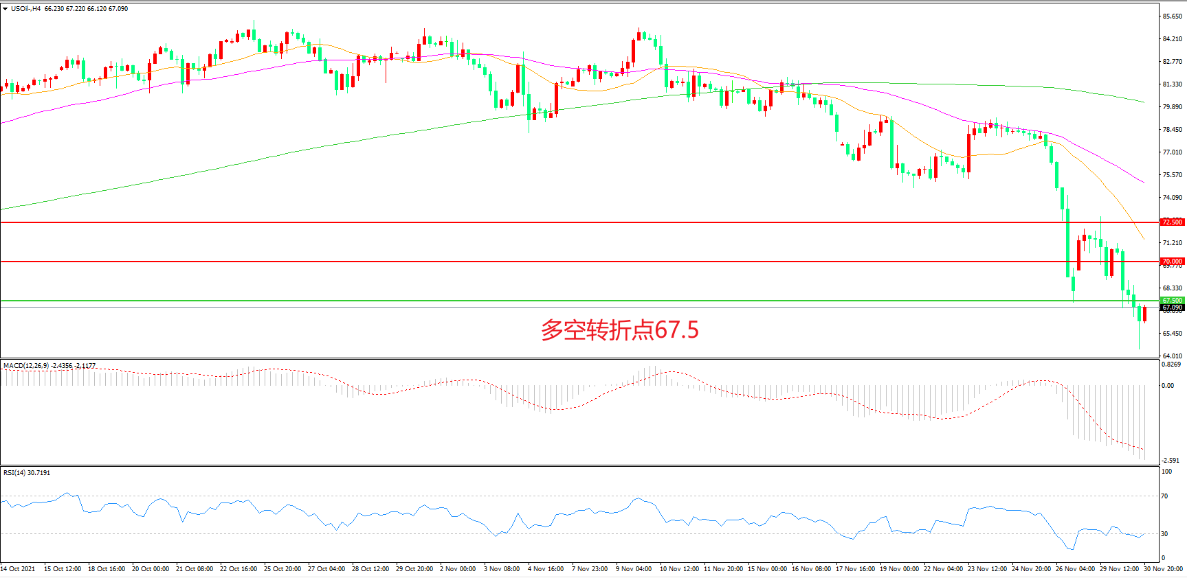 交易策略: 在67.50之下看跌,目标65.00        62.00