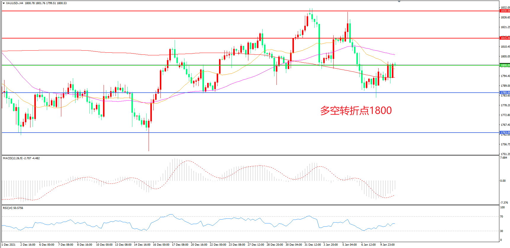 备选策略:在1800.00之上看涨,目标1815.00       1830.00