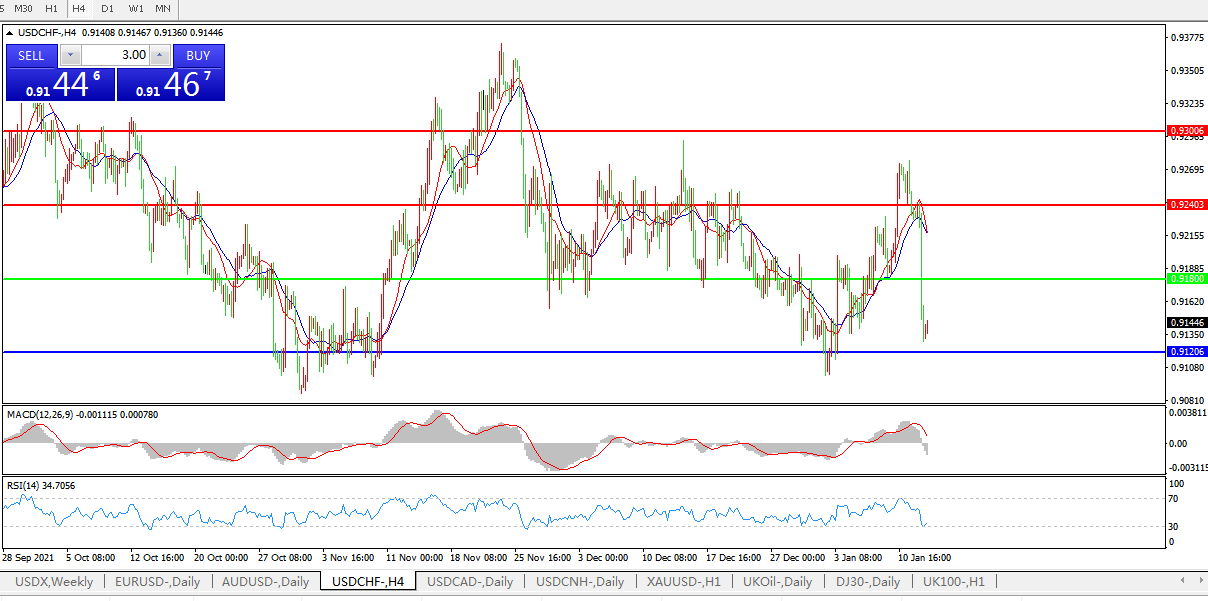 美元兑瑞郎USDCHF 4小时图: