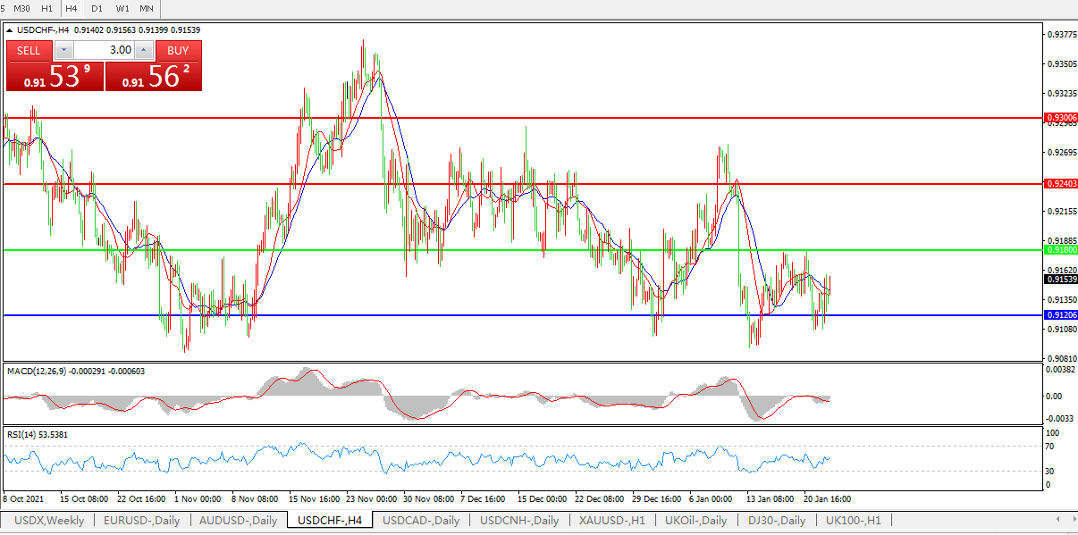美元兑瑞郎USDCHF 4小时图: