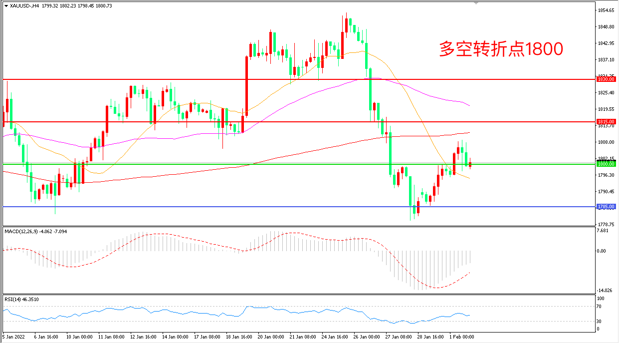 交易策略:在1800.00之上看涨,目标1815.00 1830.00