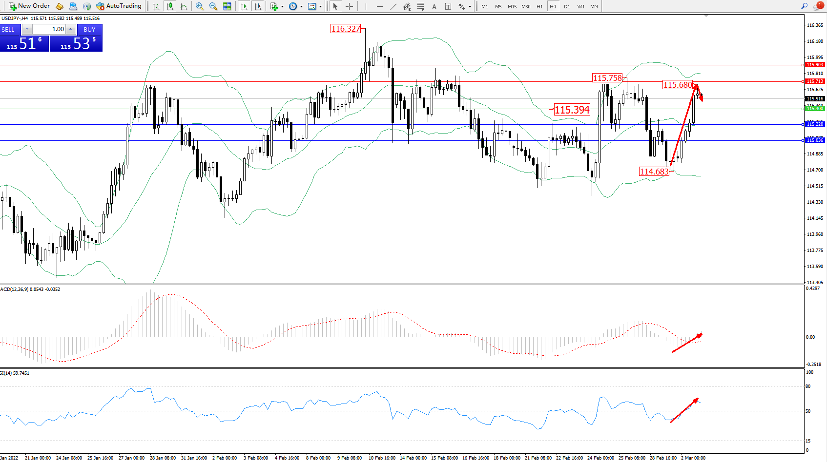 交易策略:115.394上方看涨,目标115.713、115.903