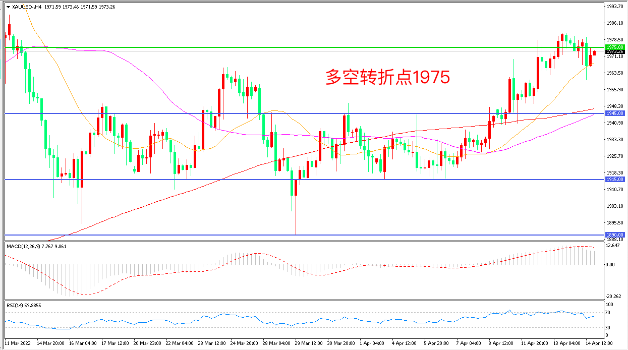 4小时图看,金价长阴下破后小幅反弹,短期走势偏强,1975成为多空分水岭, MACD红柱缩短,RSI指标走平,日内震荡上行概率较大。