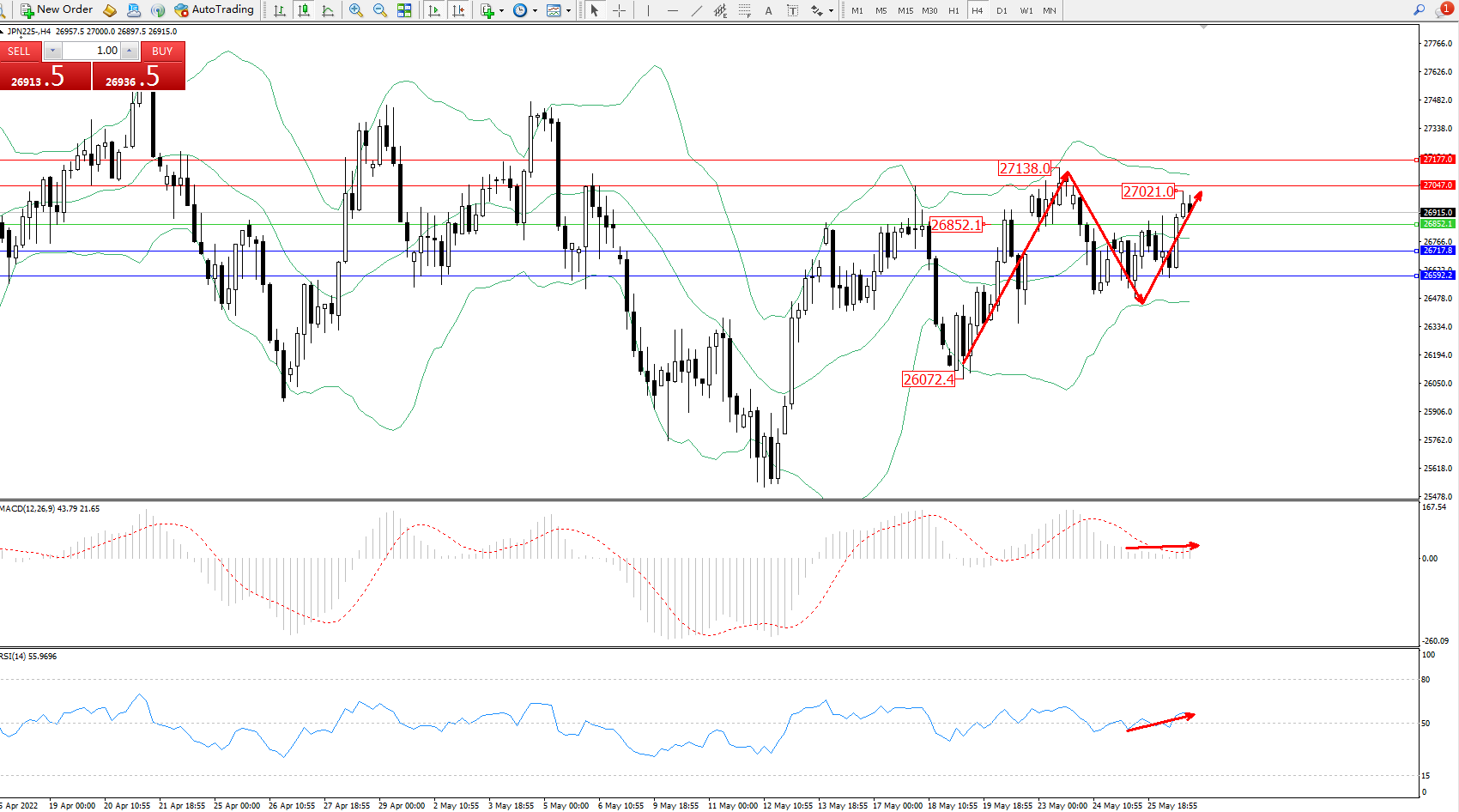 交易策略:26852上方看涨,目标27047、27177