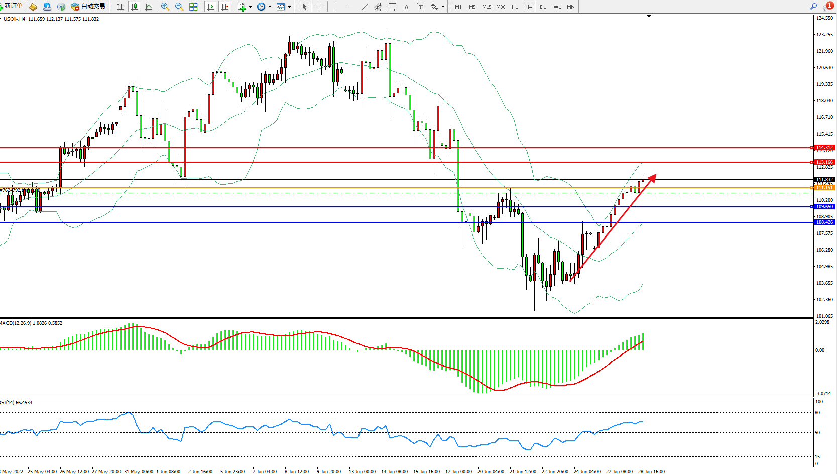 原油USOil——4小时K线图显示: