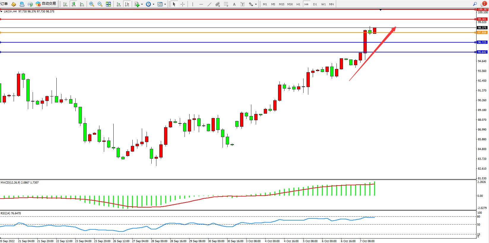 布油UKOil——4小时K线图显示: