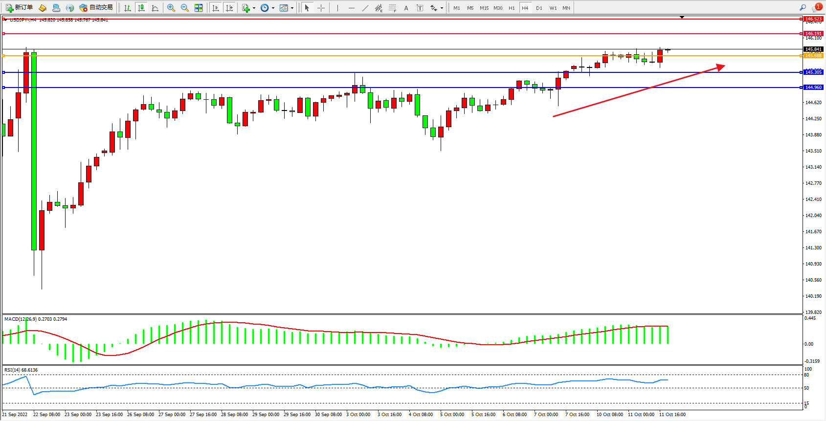 美元兑日圆维持145.841附近震荡,日本首相岸田文雄表示,支持日本央行的超宽松货币政策,尽管日元兑美元近期大跌。岸田文雄希望与日本央行行长黑田东彦密切合作;不会提前结束他的任期或向央行施压以结束其负利率政策。