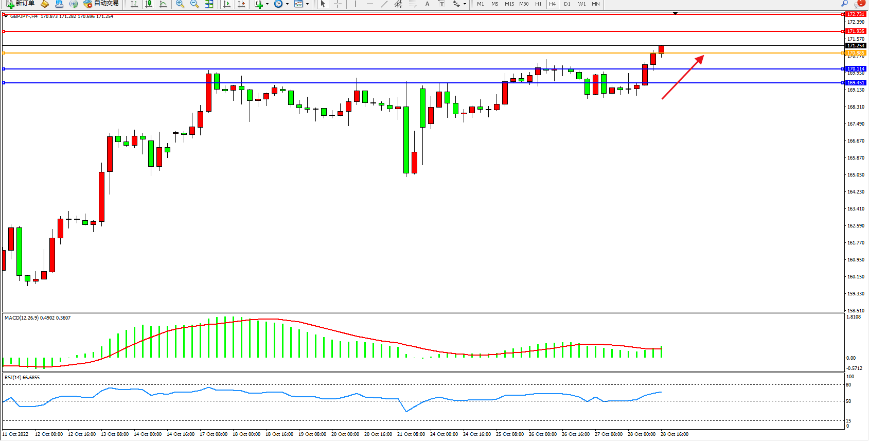 交易策略:170.885上方看涨,目标171.935、172.731