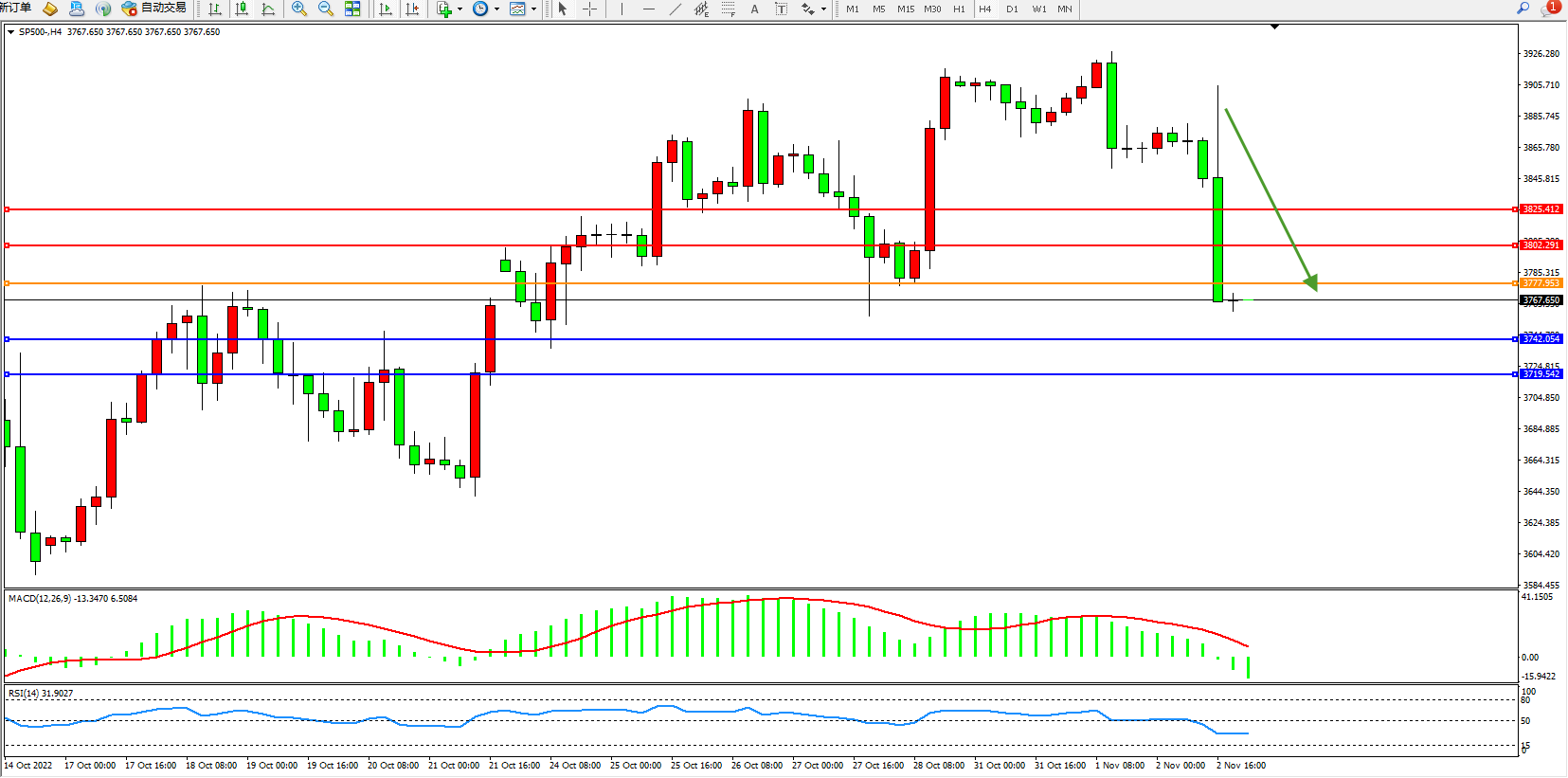 标普SP500——4小时K线图显示: