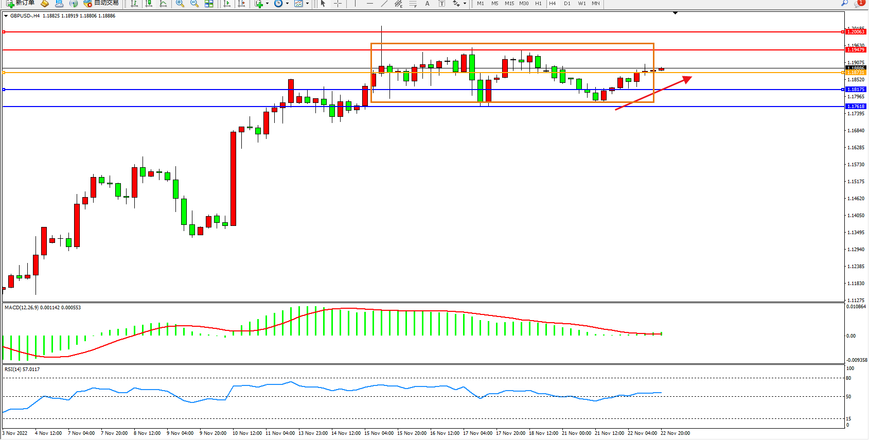英镑美元GBPUSD ——4小时K线图显示: