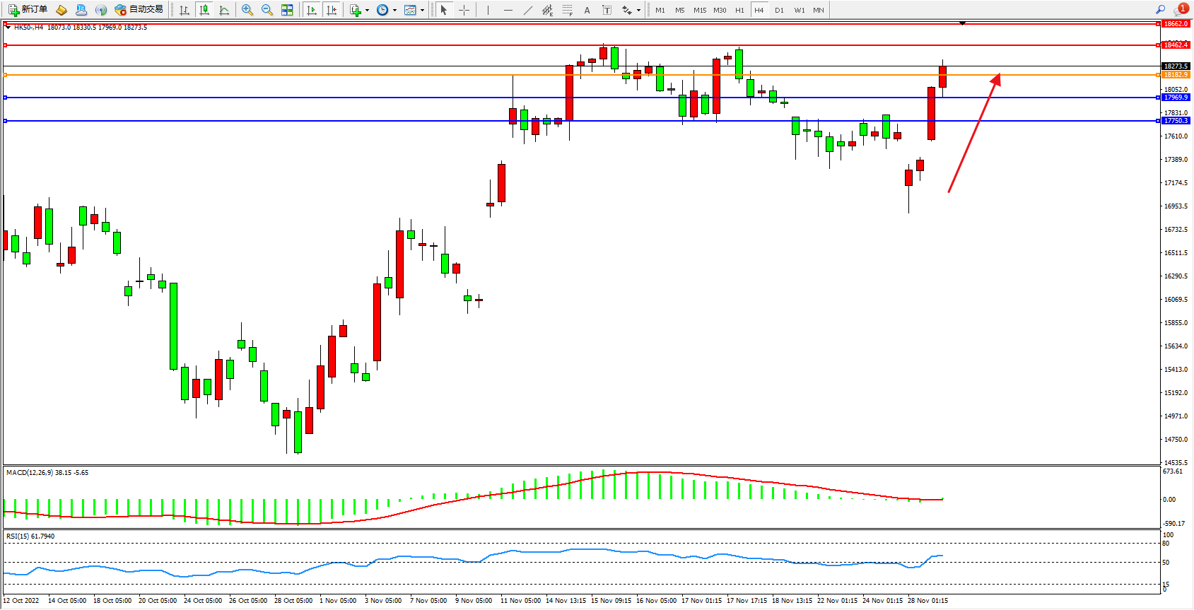 恒指HK50 4小时图