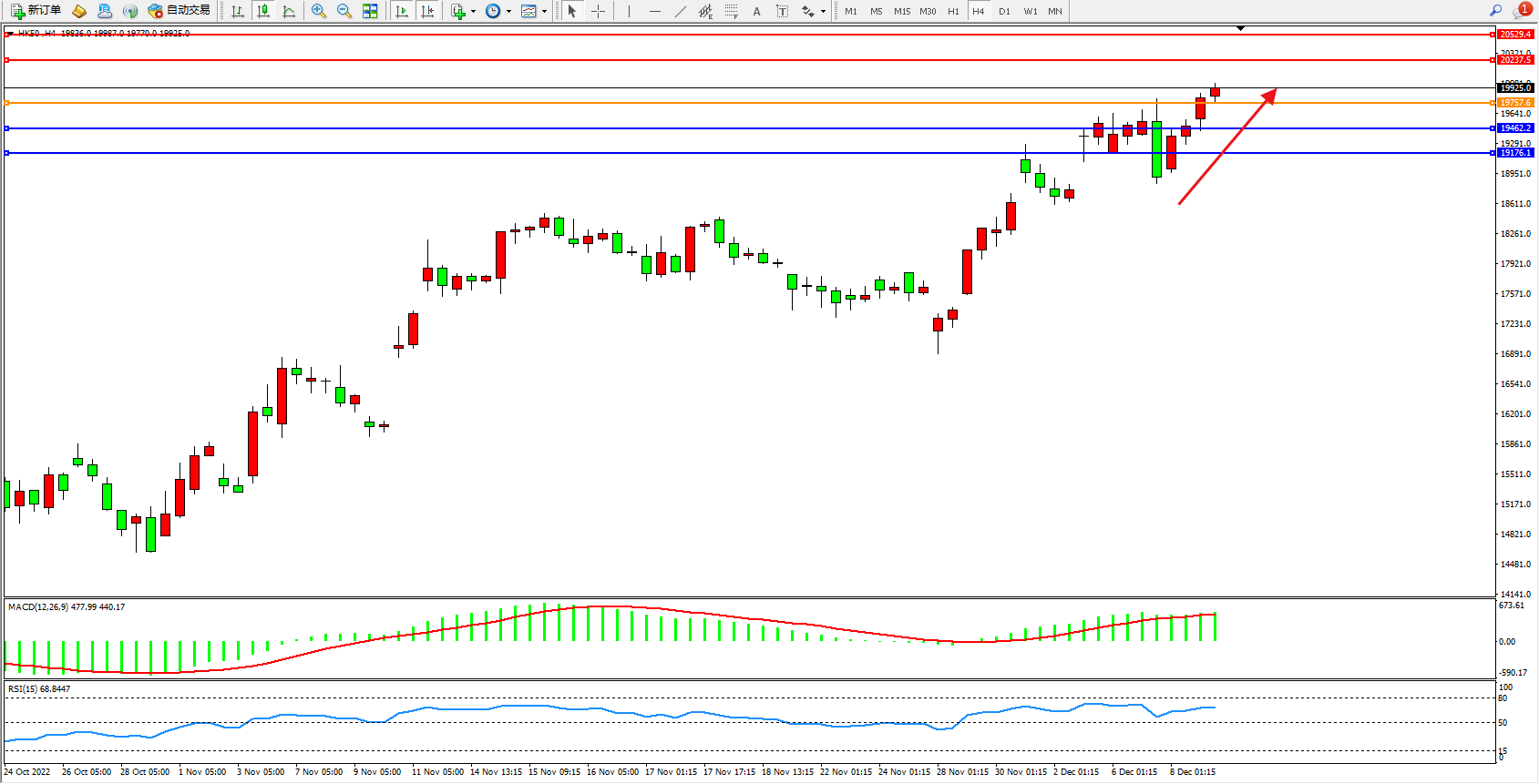 恒指HK50 4小时图