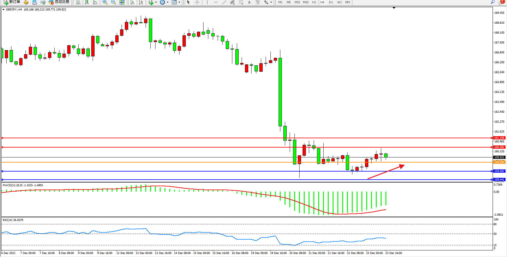 交易策略:159.594上方看涨,目标160.582、161.195