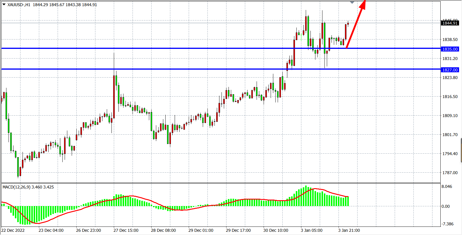交易策略:在1827.00 之上看涨,目标1850.00 1878.00