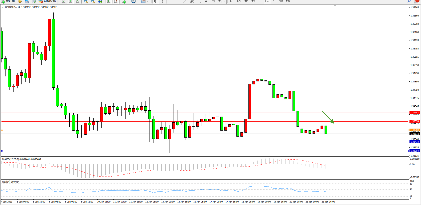 美元加元USDCAD——4小时K线图显示: