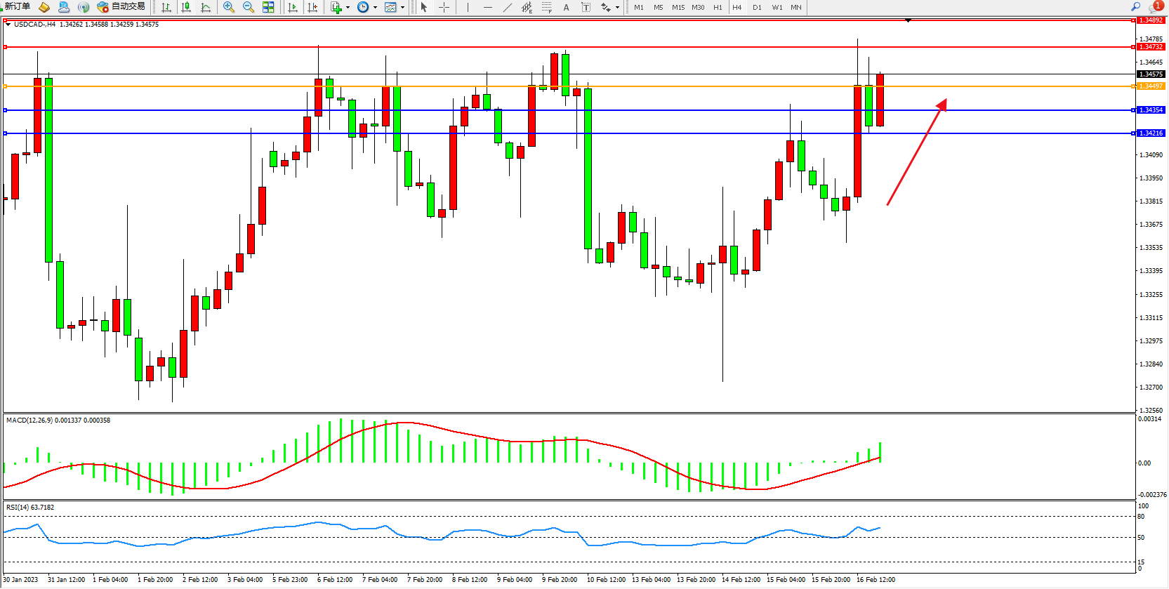 美元加元USDCAD——4小时K线图显示: