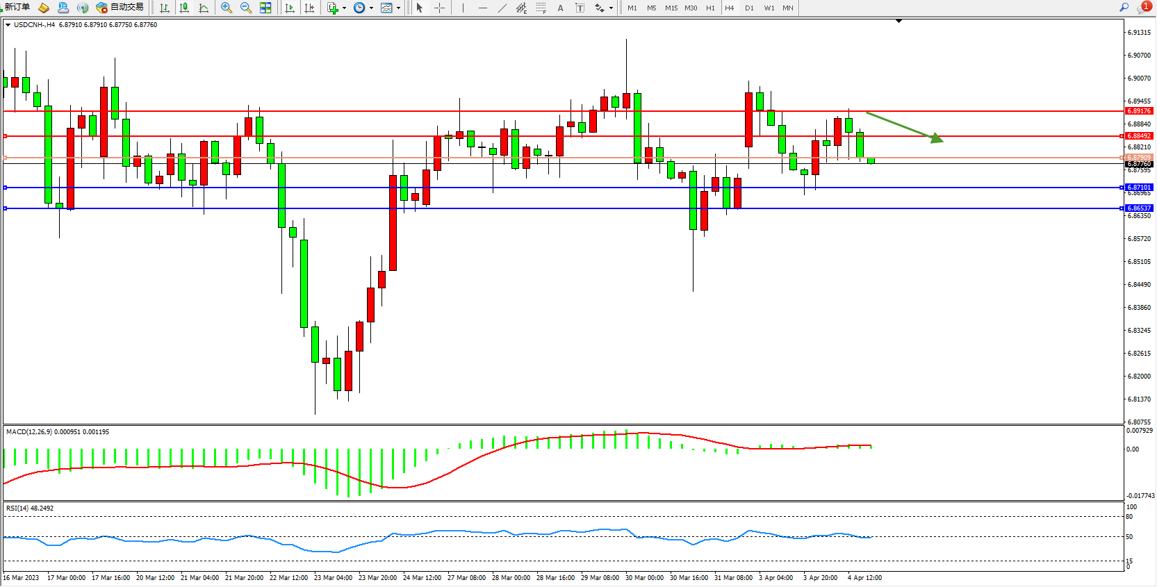 交易策略:6.87909下方看跌,目标6.87101  6.86537